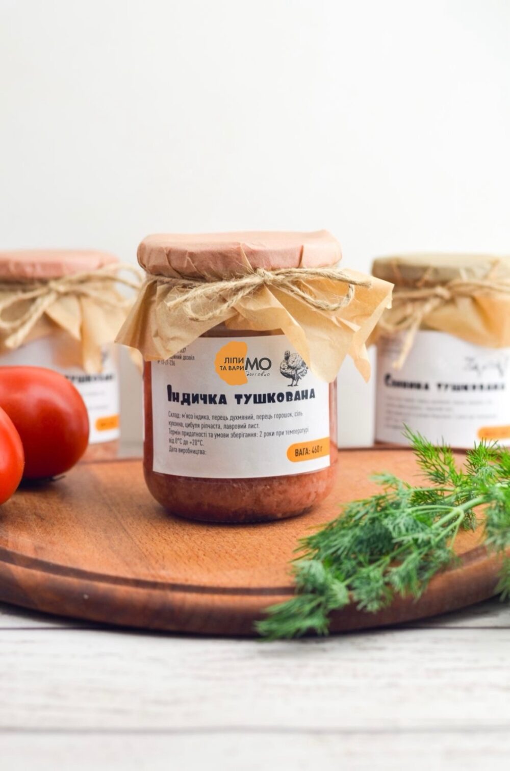 Склад: м’ясо індика, перець духмяний, перець горошок, сіль кухонна, лавровий лист.